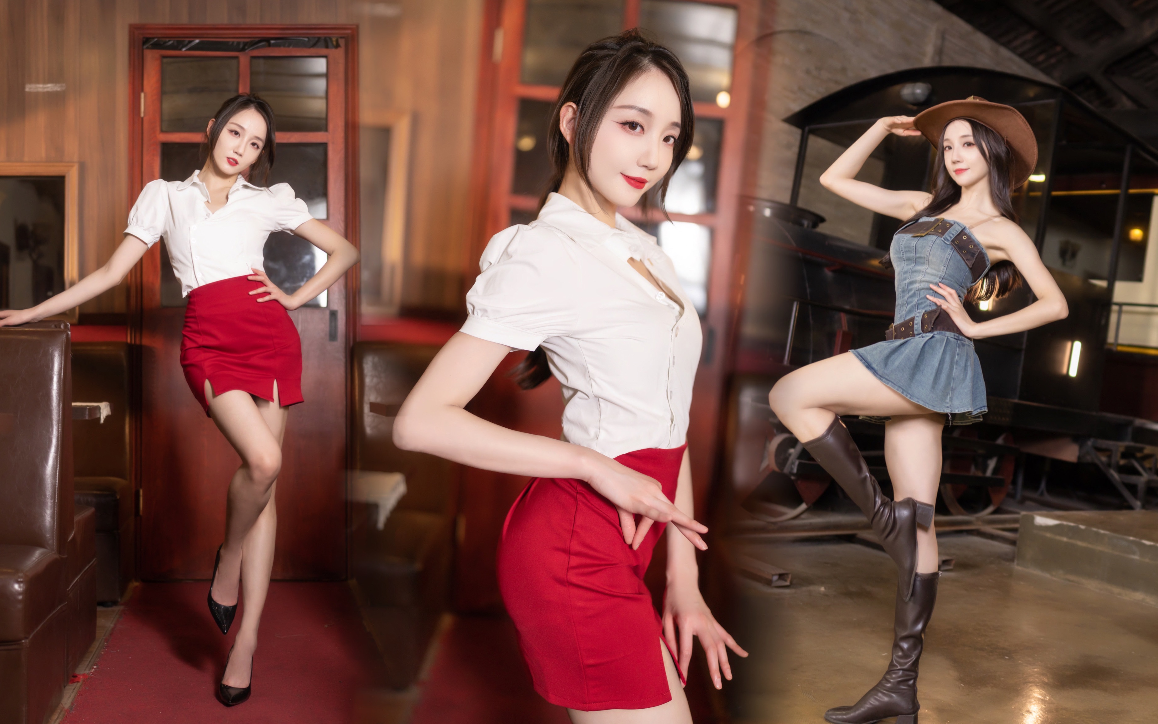 Dancing "Short Skirt" while driving a train. Red-bottomed high heels with a red skirt are magical ~