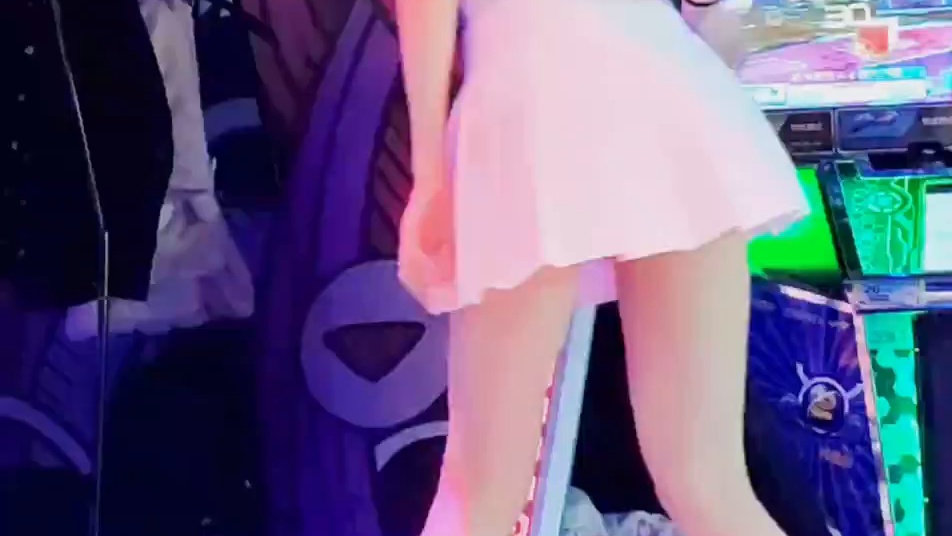 Super close up of the vertical screen of the dance machine! Black and gold skirt high heels hot danc