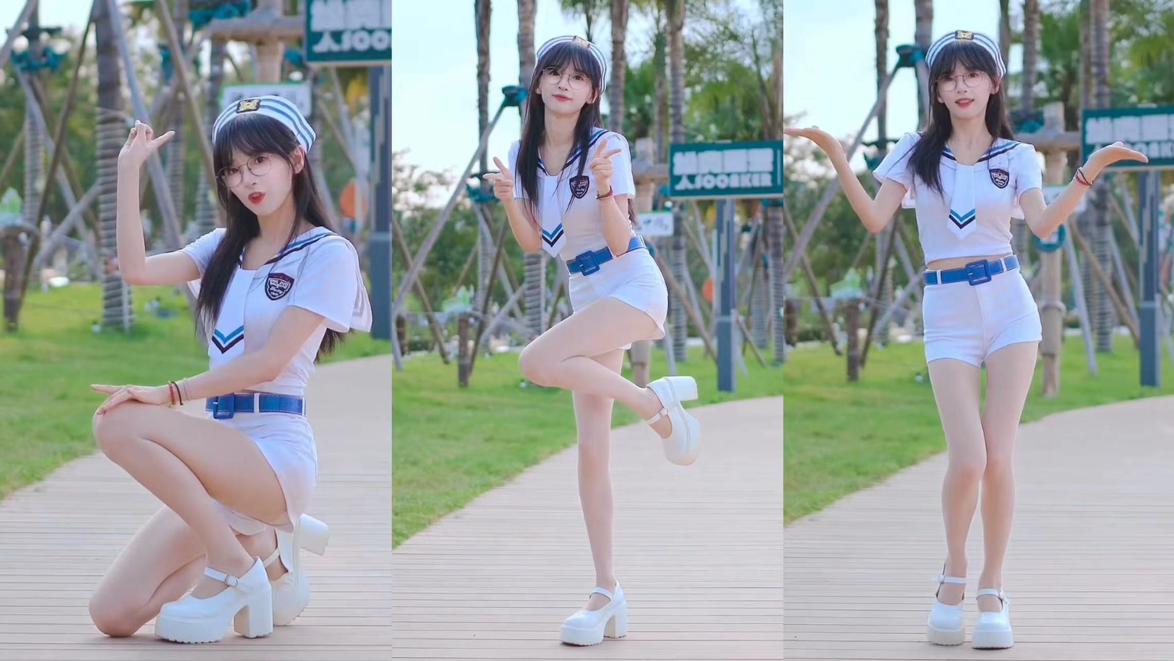 Who's the big sister wearing uniform and high-heels? I've skipped work to dance, so don't tell my boss.