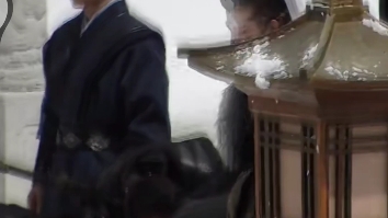 The full version of Xie Wei getting out of the sedan from the side (Reuters)