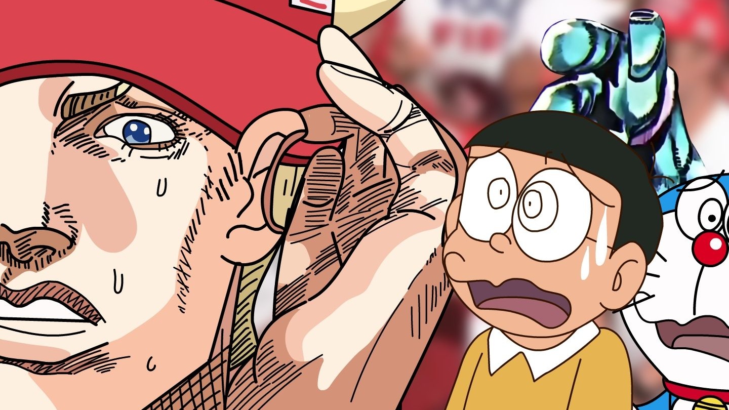Doraemon's son travels through time to find Nobita, angrily scolding him for not being a good father