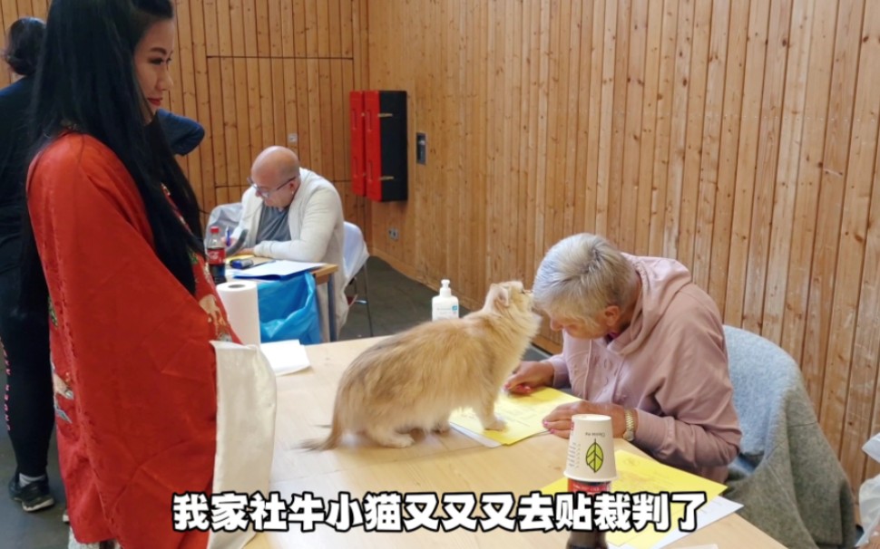 The wronged kitten went to the compe*on for the first time and rubbed the referee's hand crazily.