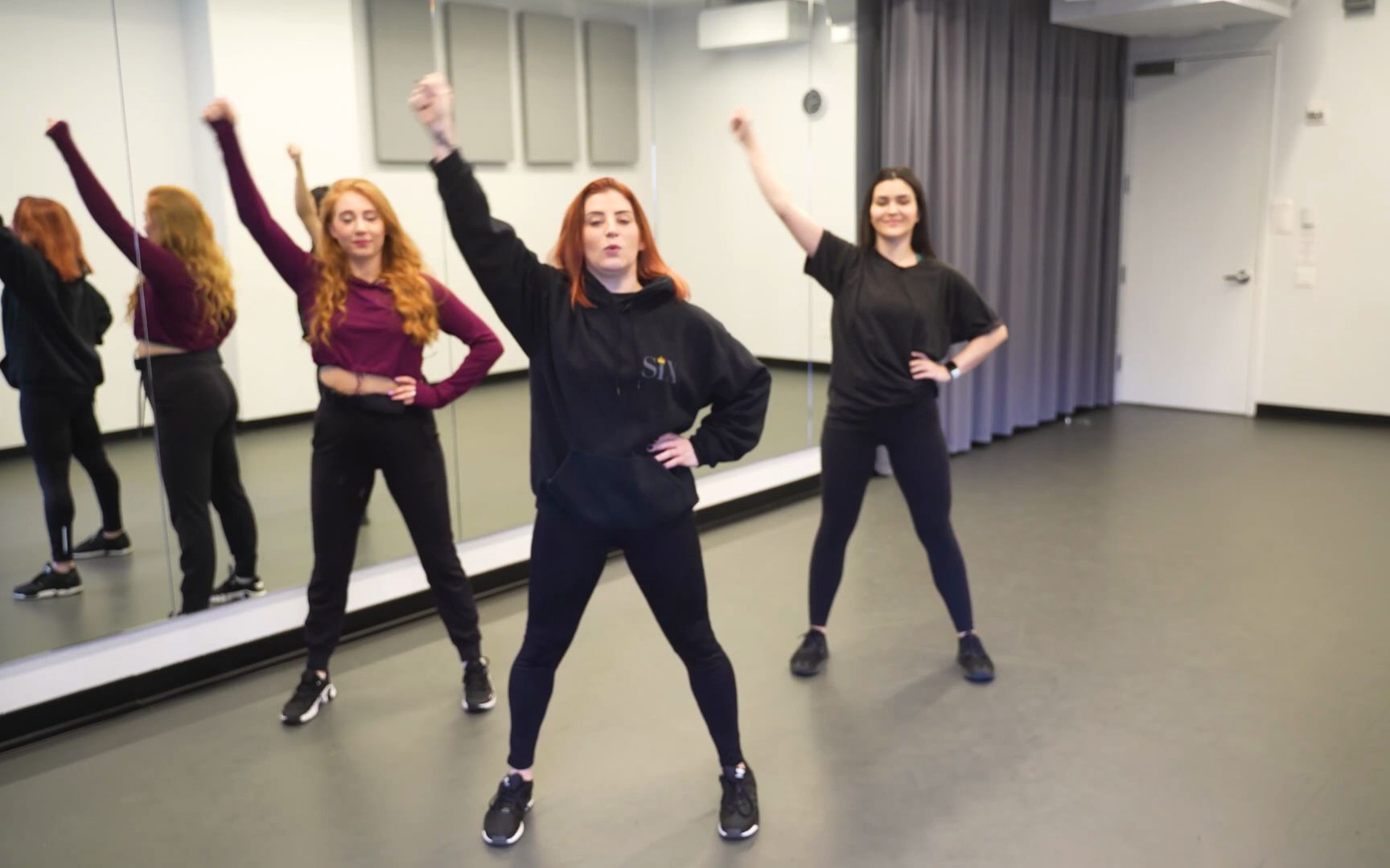 Beauty in denim skirt with beautiful hair and dancing 200820