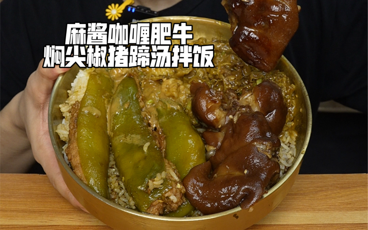 Black pepper chicken, sweet and spicy octopus, braised pork trotter, and rice in broth