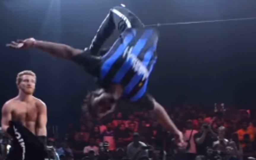 Backflip boy's entry into the pit