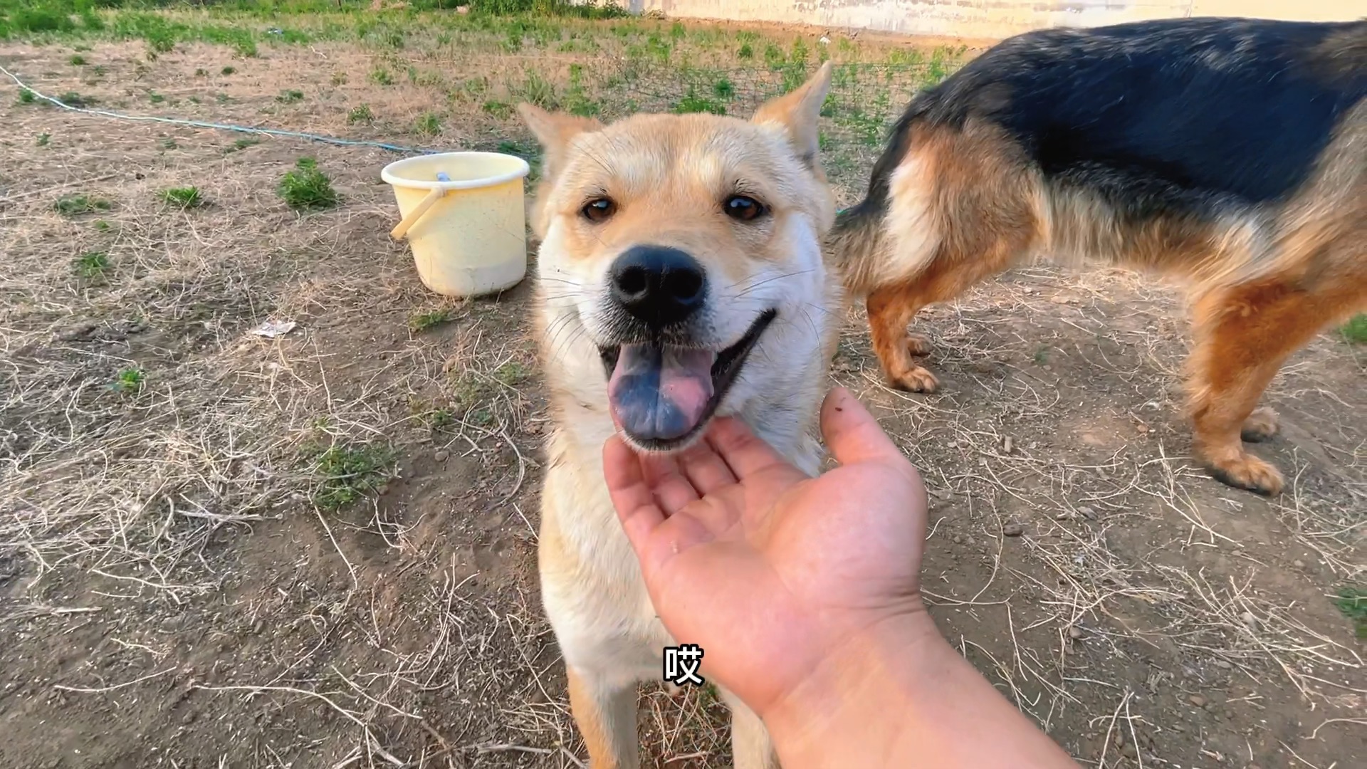 Two dogs almost fight because of knocking eggs