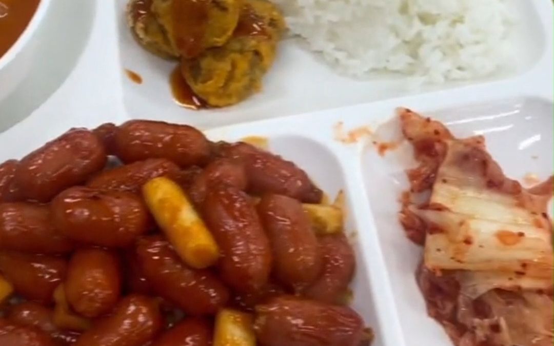 A Korean university cafeteria iron behind bars set meal costs about 14, and you can add a snack afte