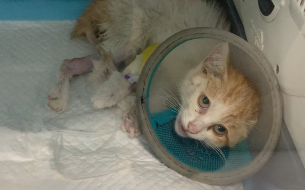 The poor cat's body was pierced by a wire. When I asked, I found out it was the cat who had done it