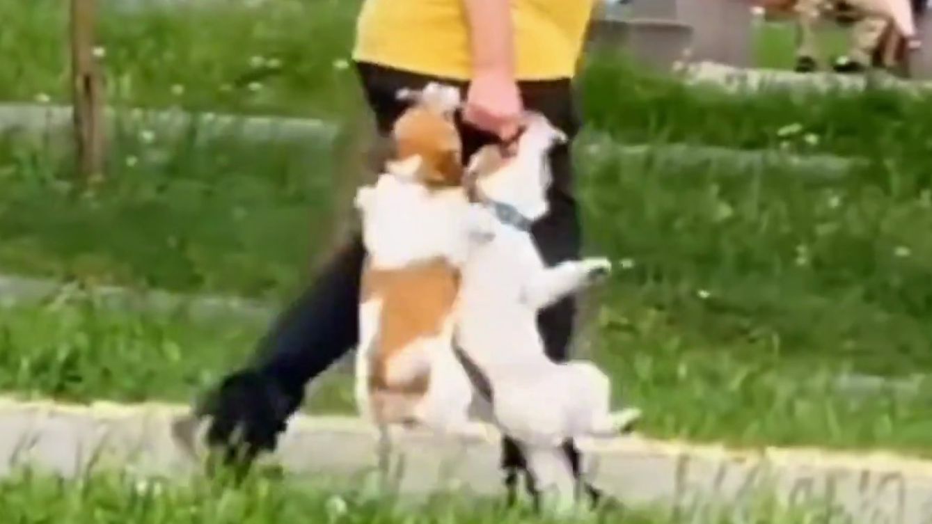 The girl was chased by a vicious dog. If she ran any longer, the dog would vomit milk!