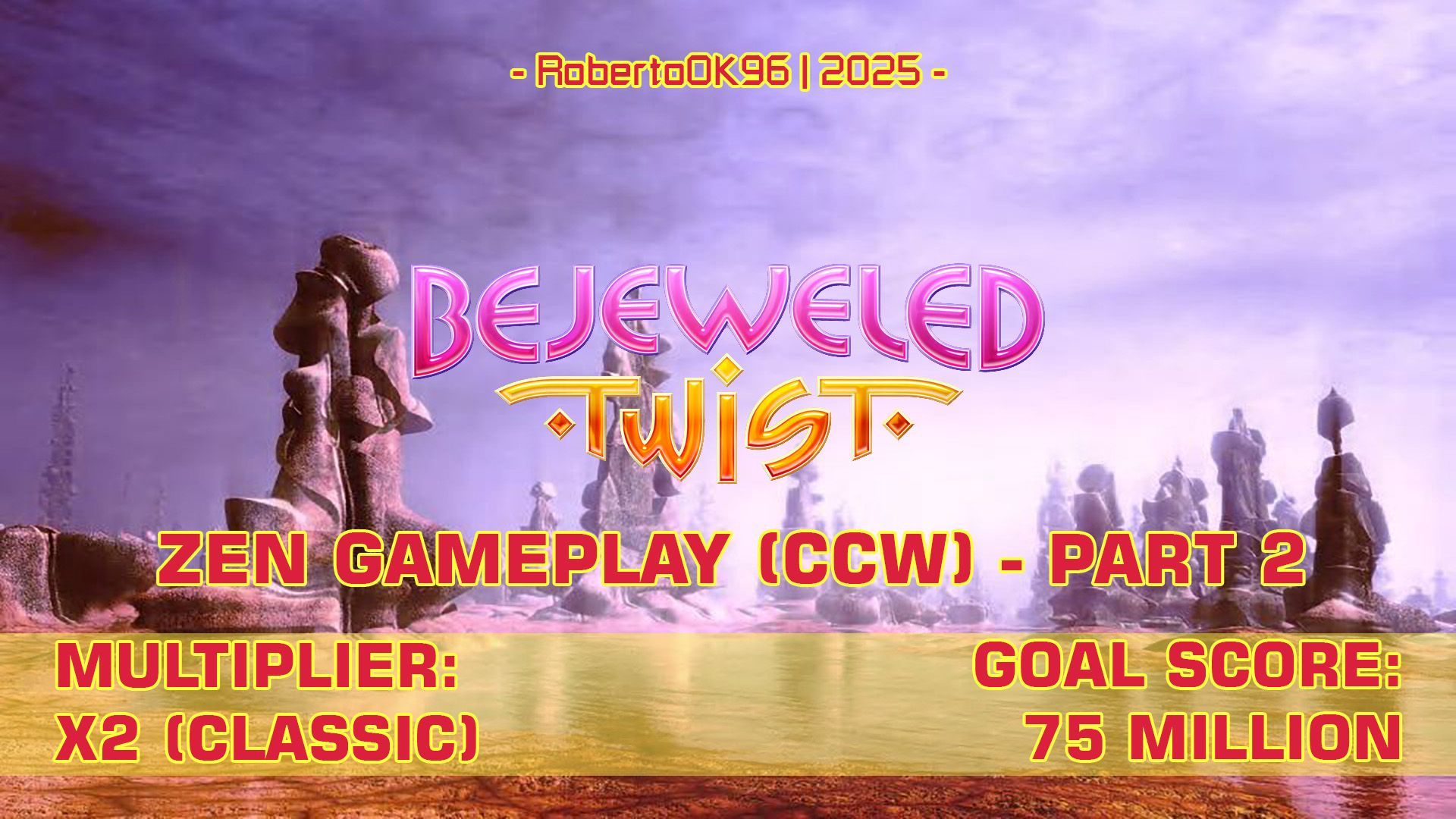 The second part of Bejeweled Twist gameplay with CCW mod. Continuing the previous gameplay until 75 million points. The interesting fact is, this part using scoring from Classic Mode, which doubled than on regular Zen Mode. However, the gameplay takes longer than usual because I had a micro sleep since this video was made at evening after back from work.