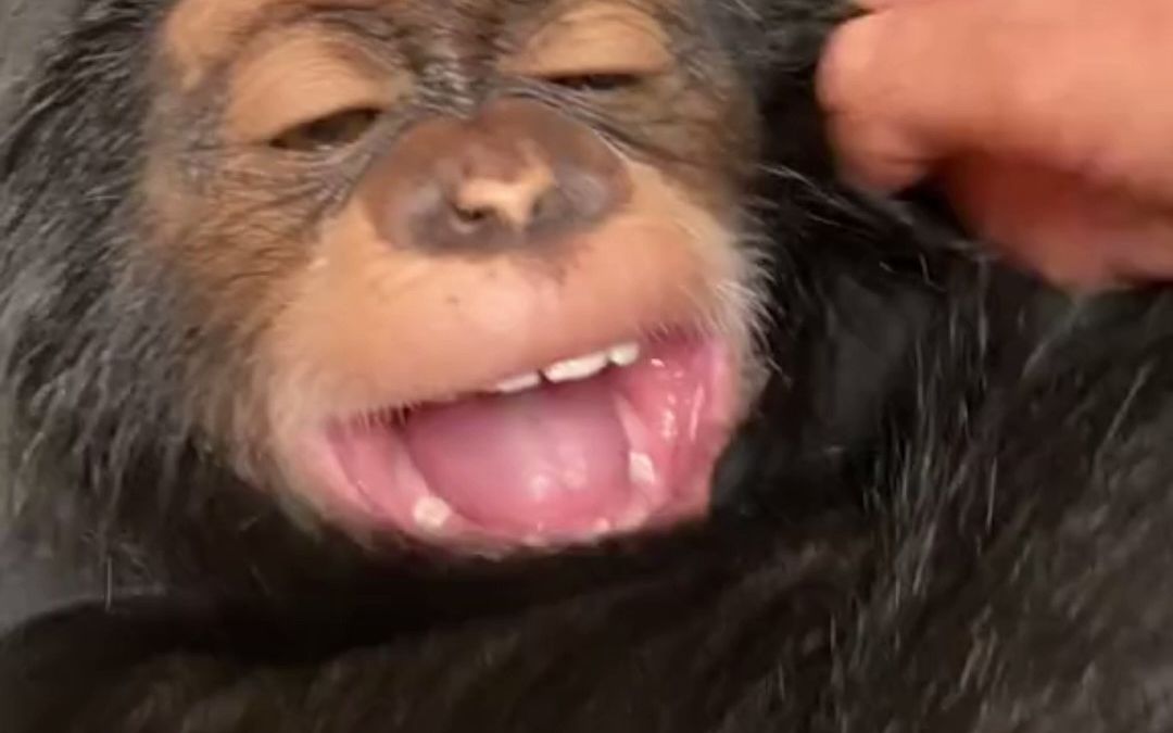 [Animals]Father chimp: gentle with his wife and children