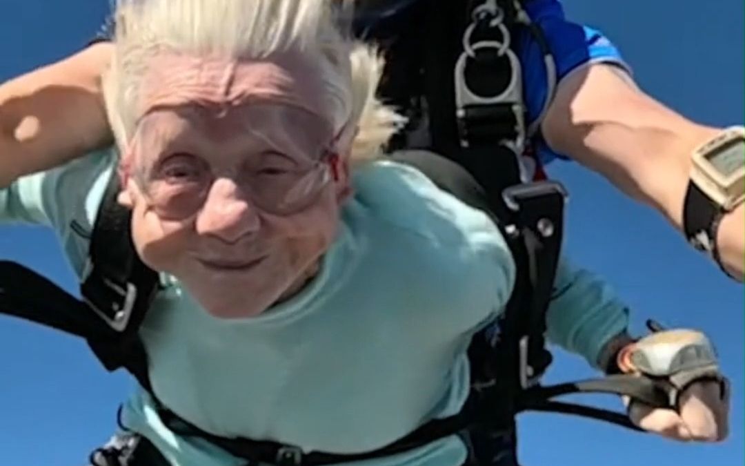 Four skydivers eating pizza at an altitude of 4,200 meters