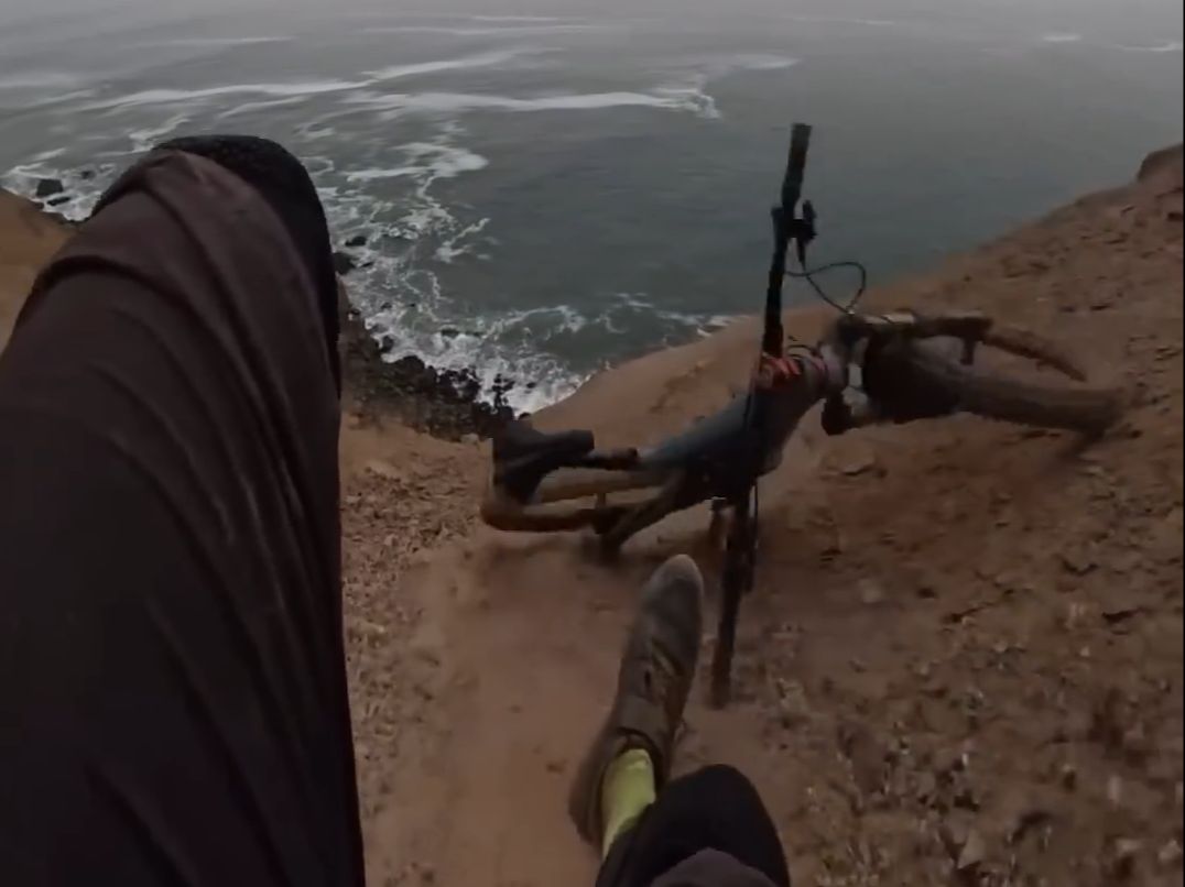 A man riding a bicycle did not look up at the road and two bicycles collided accidentally.