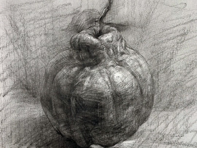 [Eggplant Sketch] Tempered draft, in-depth sketch with tears in still life, charcoal strips, flowers