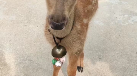 In order to protect the lamb from being bullied by the dog, a pair of stainless steel horns were mad