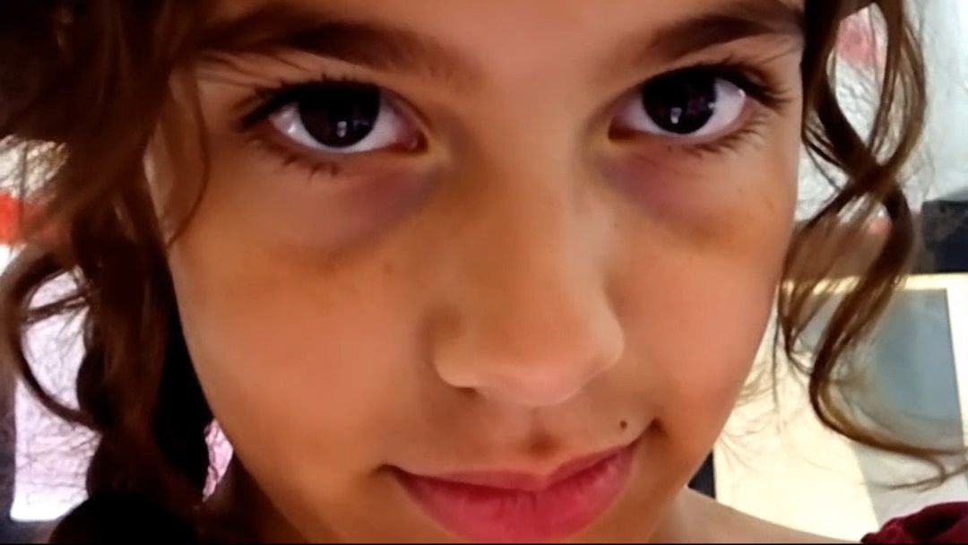 A close up of a girl wearing a sparkling tiara, her hair cascad