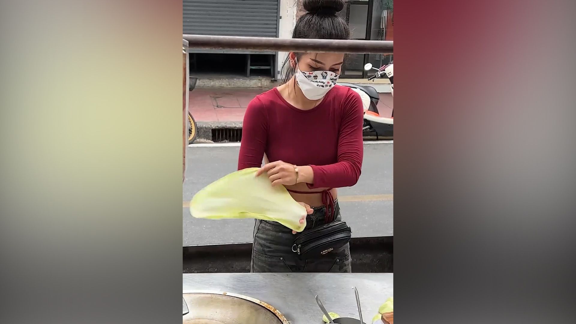 The Korean street grandfather makes homemade crepes. The stall is exquisite and clean. Even in winte