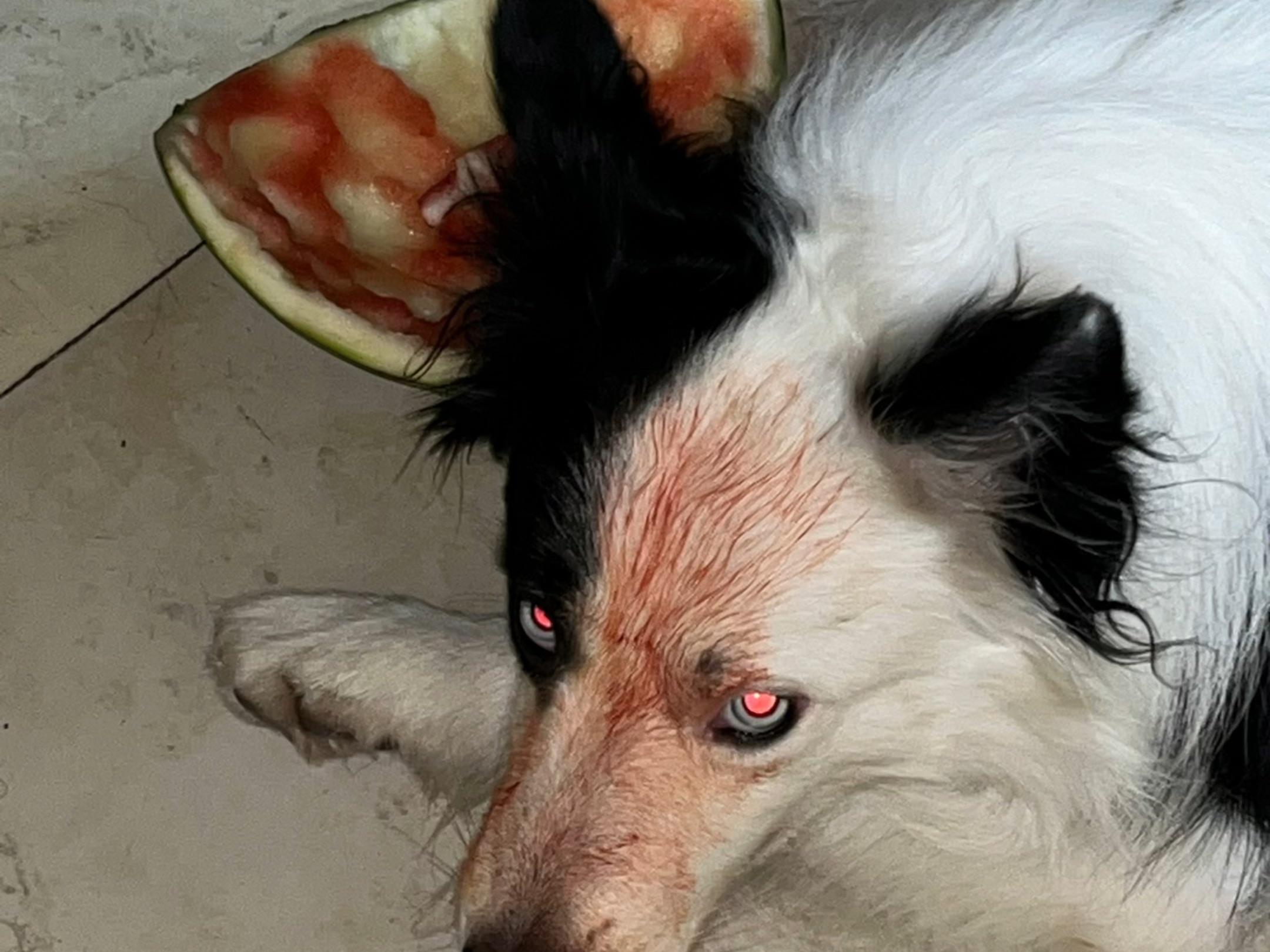 There is a pot of meat next to the "tiger". Border Collie VS Husky, who dares to eat it?