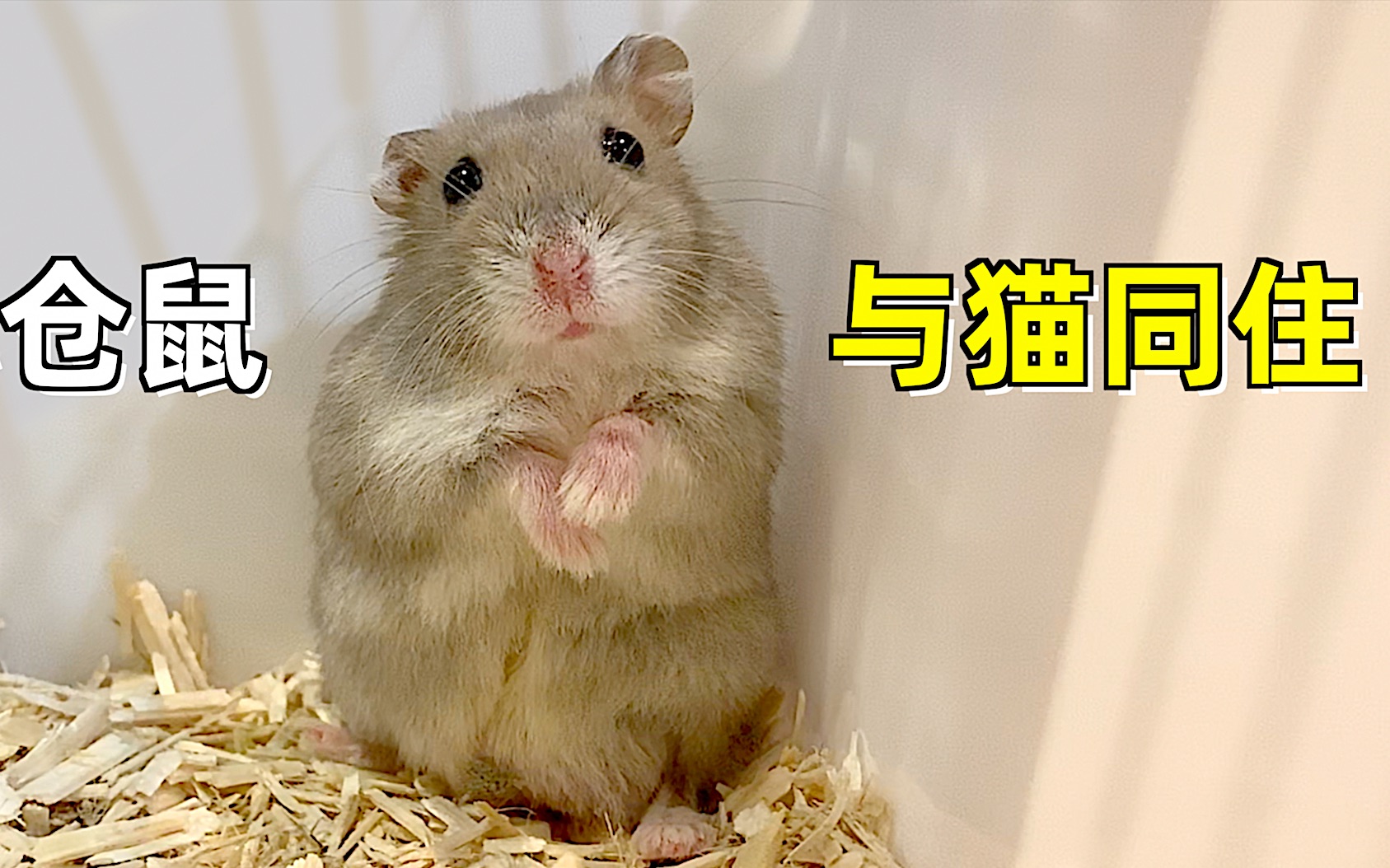 The cute hamster moved into a new home, and his roommates turned out to be three fat cats, which sca