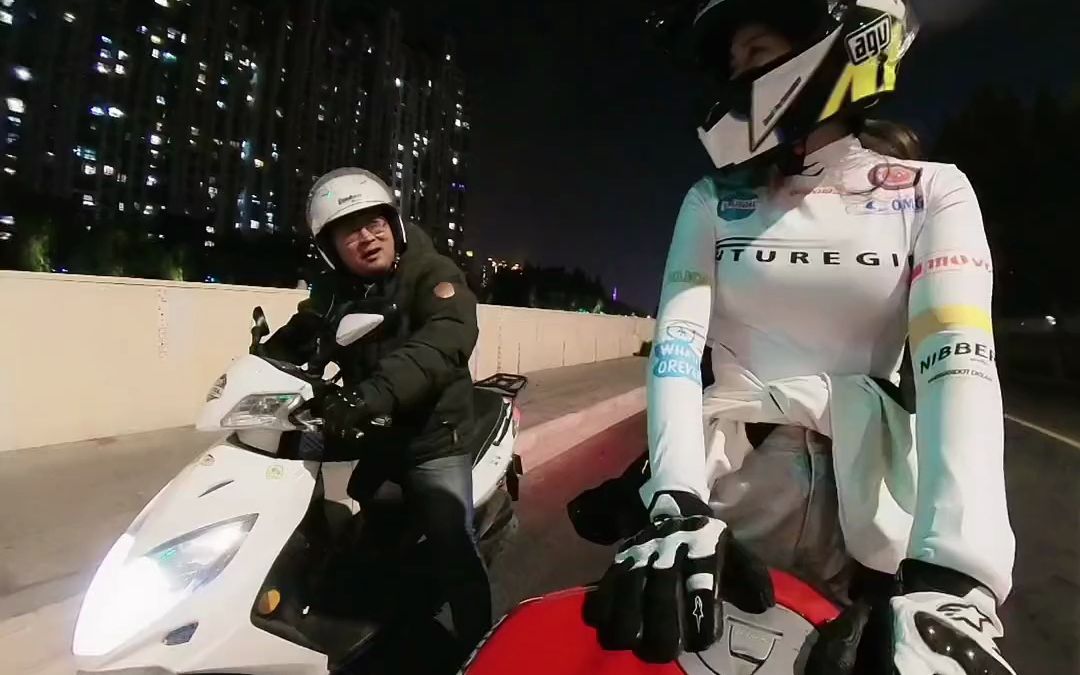 When Shushu drove onto the motorcycle, JJ: Shushu in front of you, please pull over, you are speedin