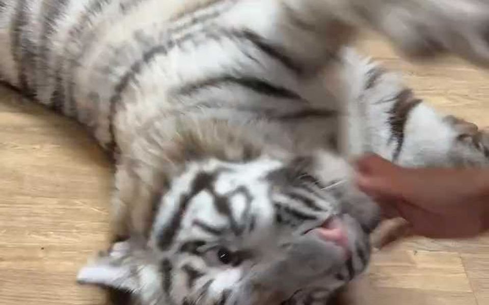 Two-headed white tiger cub meets tourists for the first time