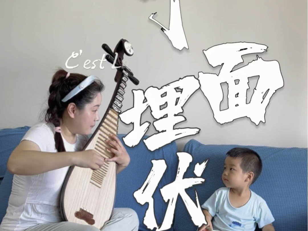 Play a piece of "Ten Sides of Ambush" for the cute baby on the pipa, and he keeps saying he is scare