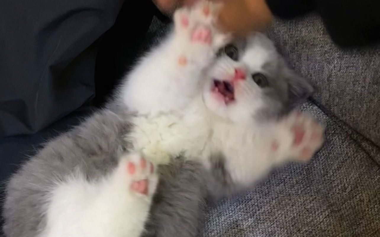 The first time for a one-month-old kitten eats meat!