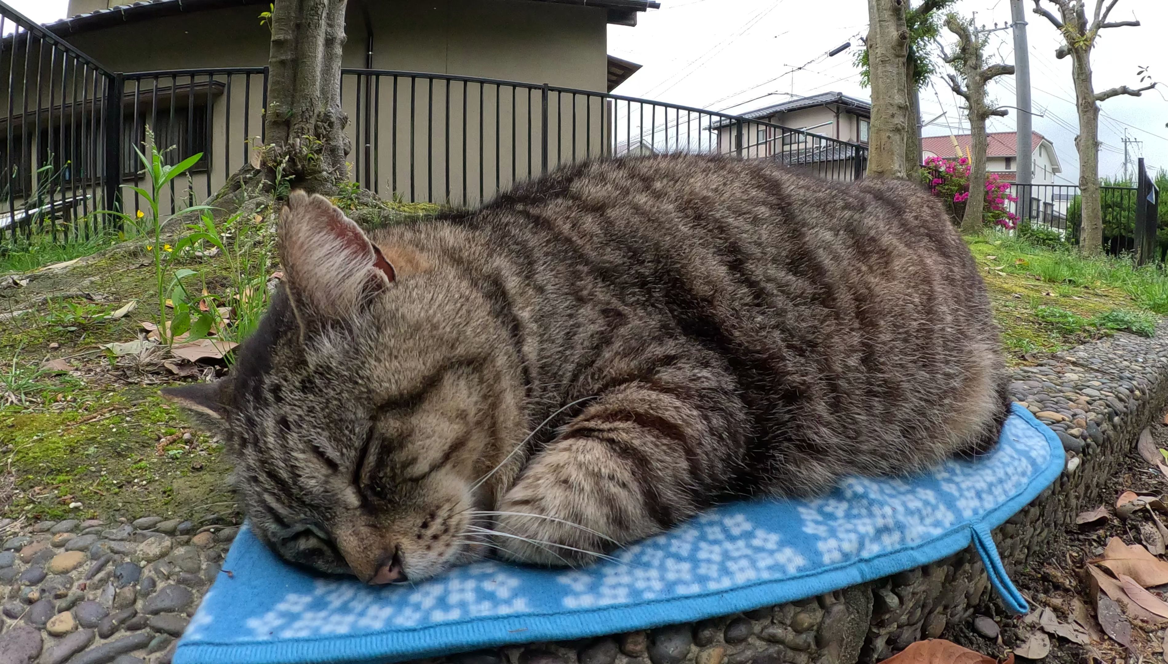 Calico Cat Sits On a Park Table And Talking To Humans Sweetly.