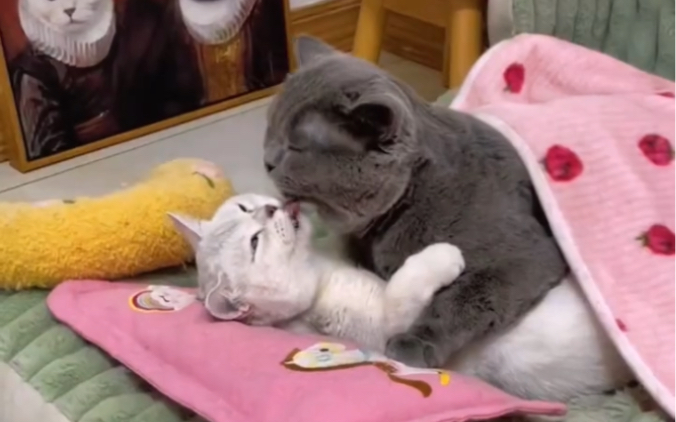Animal|British Shorthair Fights with Russian Blue Cat