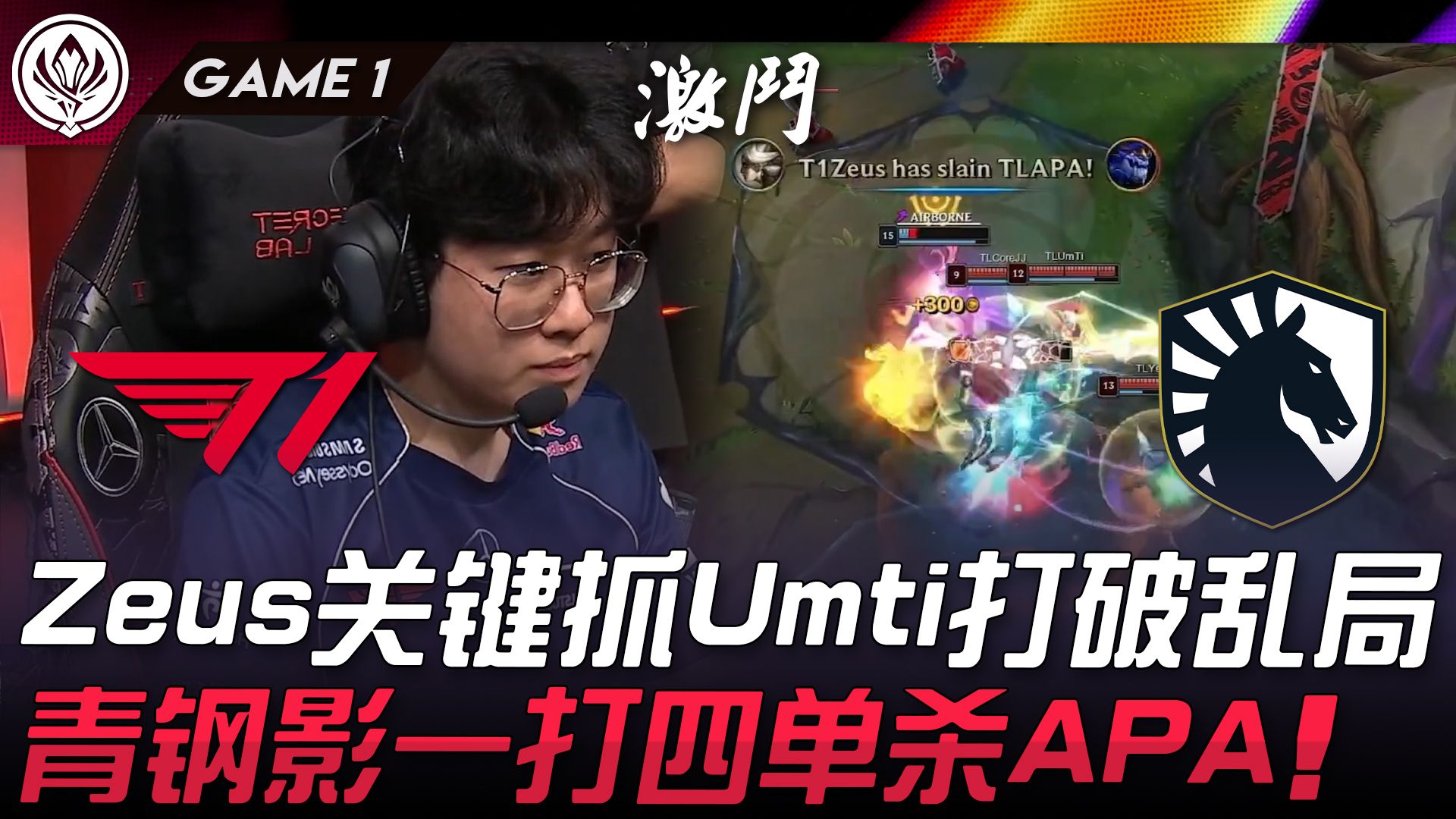 T1 vs KT Telecom Showdown! Zeus Solo Kill, Incredible Teamfight—Zeus's Lightning Strike 1 vs 3! Cuzz