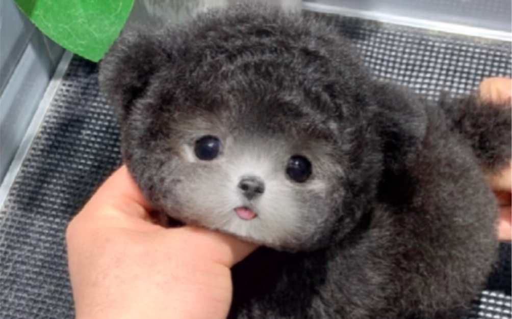 The puppy was so nervous when it was getting its hair trimmed for the first time~ His little tongue