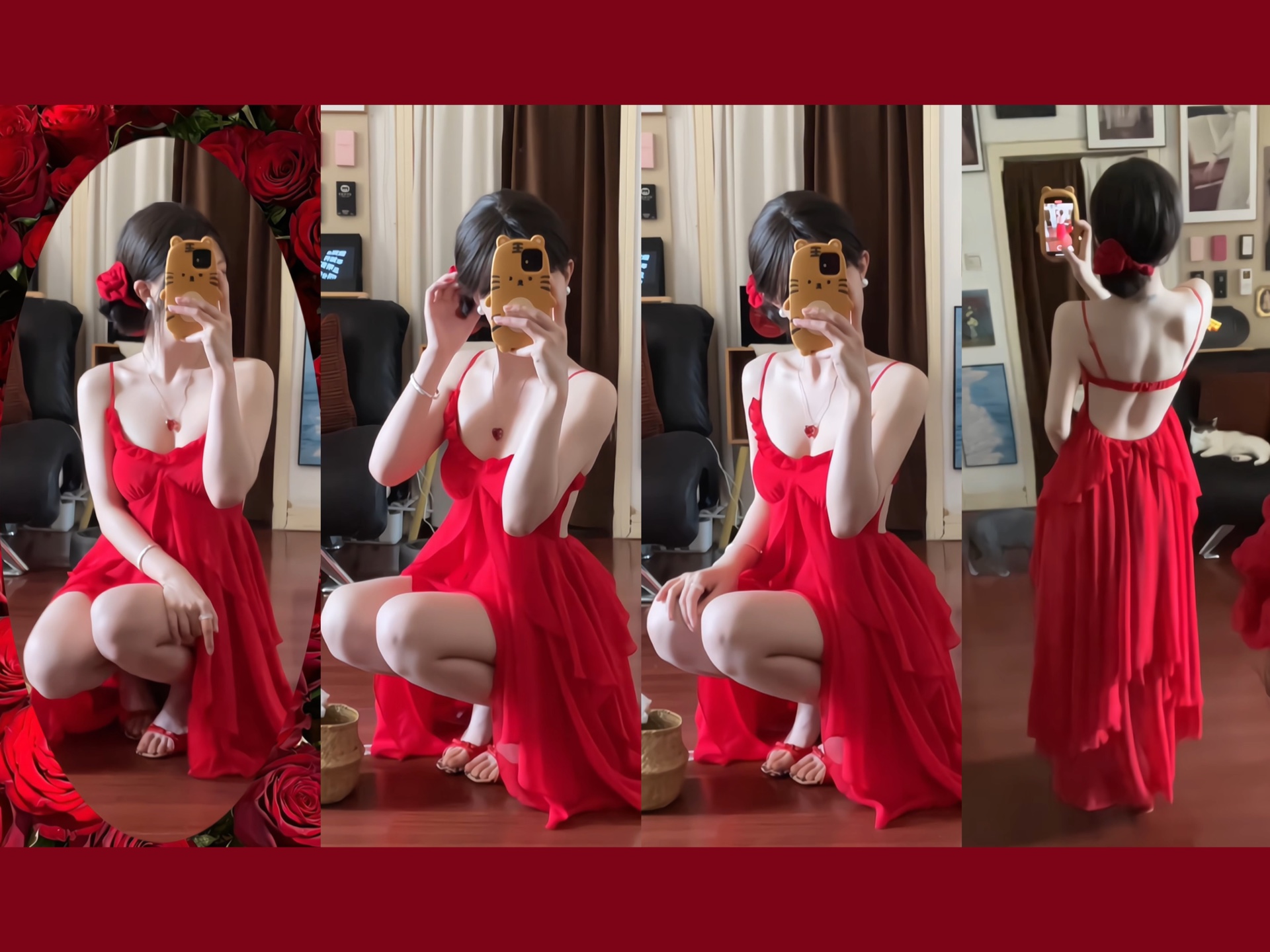 Trying on three elegant dresses— which one looks the best?