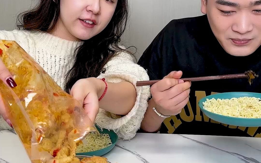 #Sour and spicy noodles Today Binbin is a little smart, but... #couples eating daily #love life love