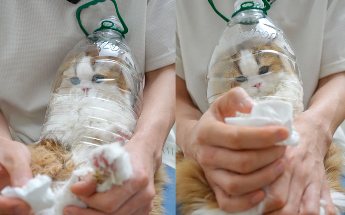 Washing three kittens at the same time, unexpectedly one is better behaved than the other!