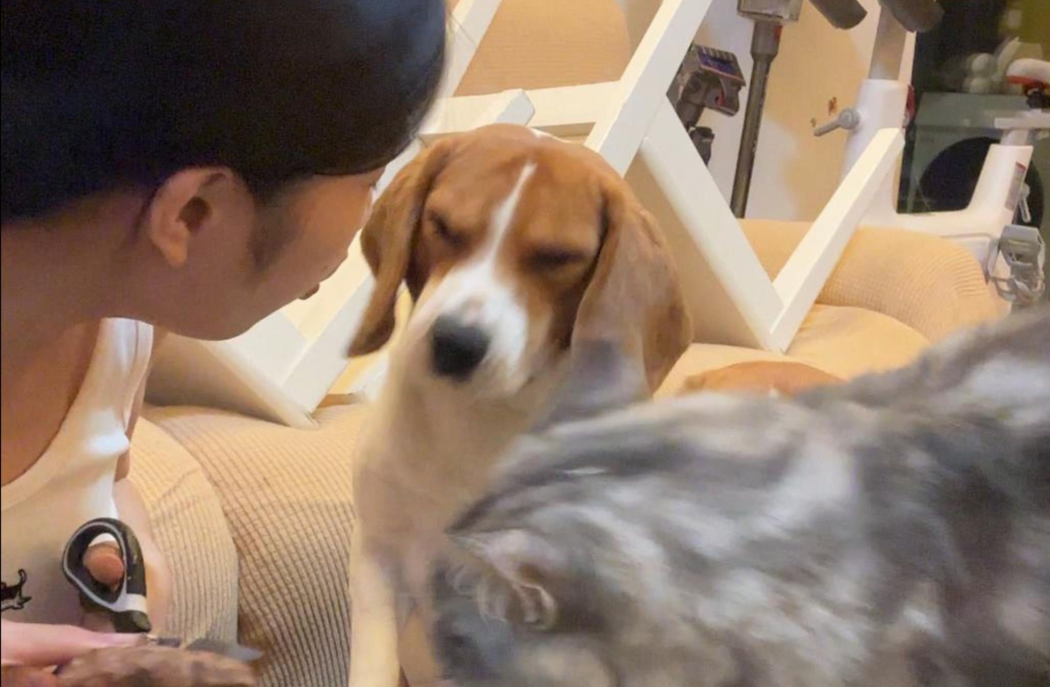Dog Video | Petting My Beagle Dog With My Foot