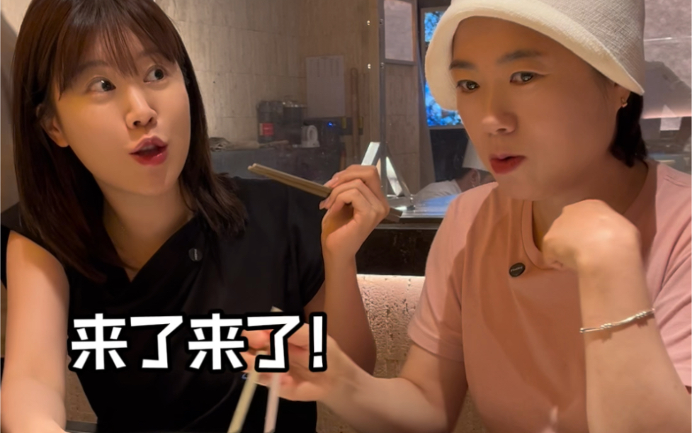 Dad has already started eating ahead of us!
