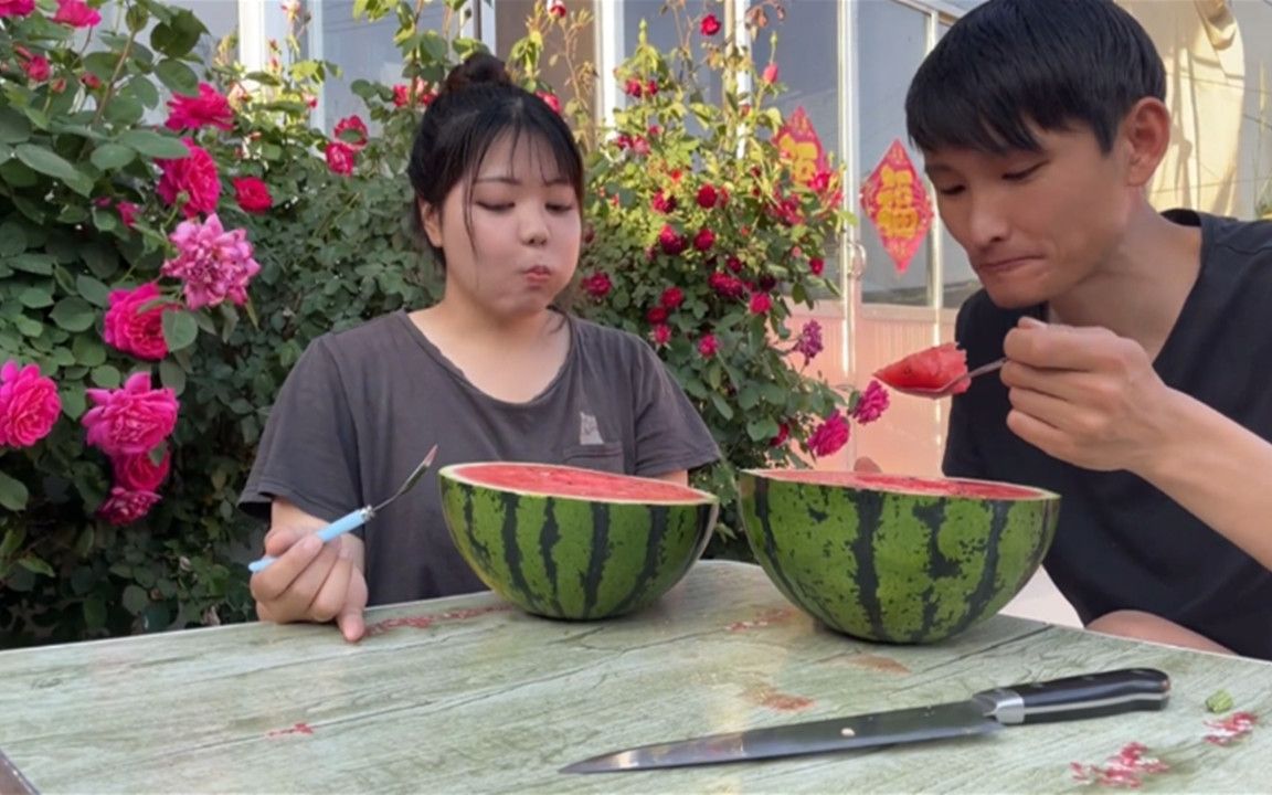 People who eat melon? A boy picked up his girlfriend from the same community and came home from get