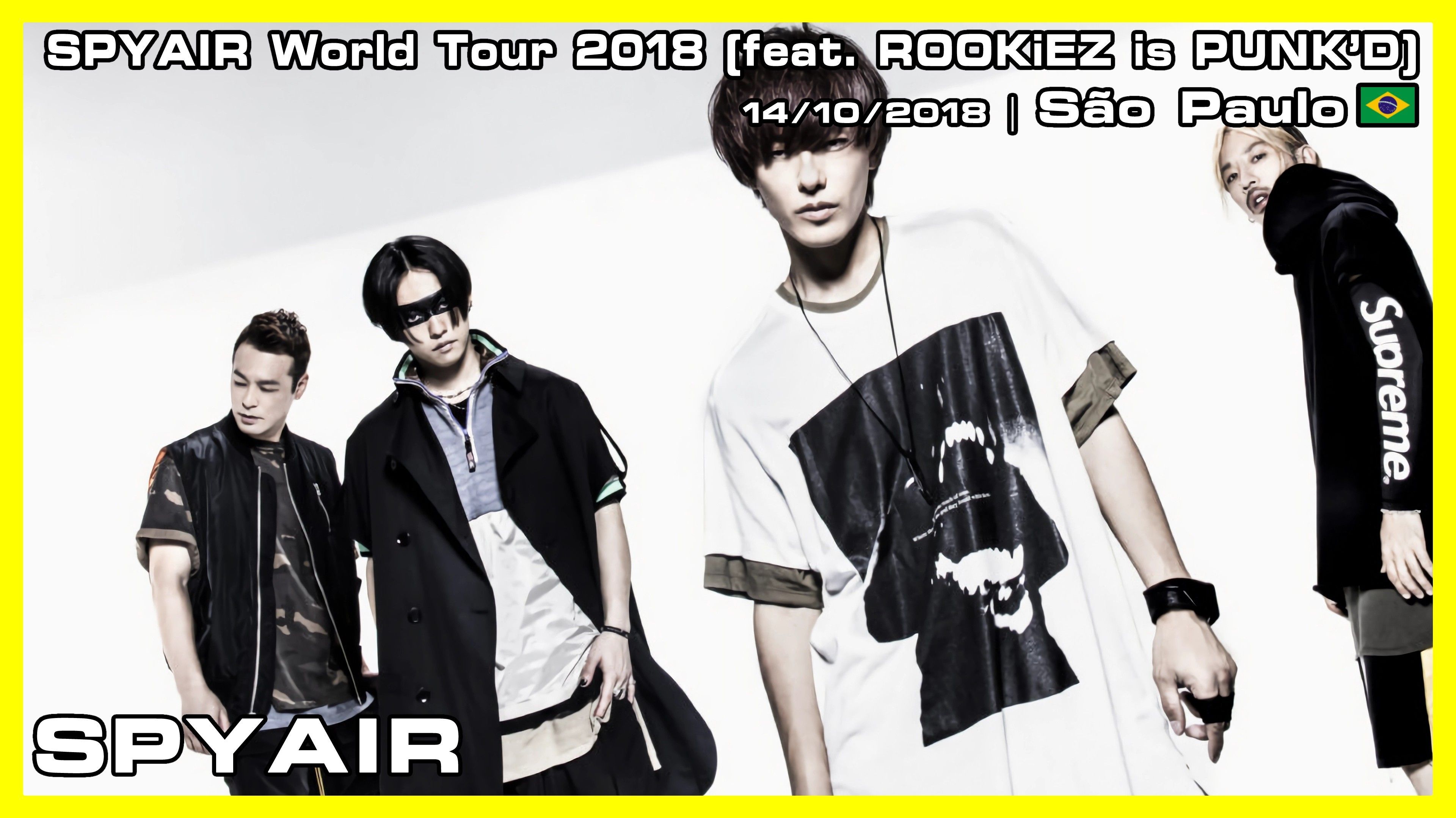 :: Informações: - Participante(s): SPYAIR [Ike (Vocal), UZ (Guitarra), Momiken (Baixo), Kenta (Bateria)] - Evento: SPYAIR World Tour 2018 (feat. ROOKiEZ is PUNK'D) - Local: São Paulo (Brasil) - Data: 14/10/2018 :: Setlist: 1. Genjou destruction 2. GLORY 3. Wendy ~it's you~ 4. Last moment 5. I'm a believer 6. Sakura mitsutsuki 7. BEAUTIFUL DAYS 8. My friend 9. Hold It, buster!! ~Battle of rap~ 10. JUST ONE LIFE 11. Imagination 12. RAGE OF DUST 13. Samurai heart (Some like it hot!) 14. I wanna be... 15. Singing