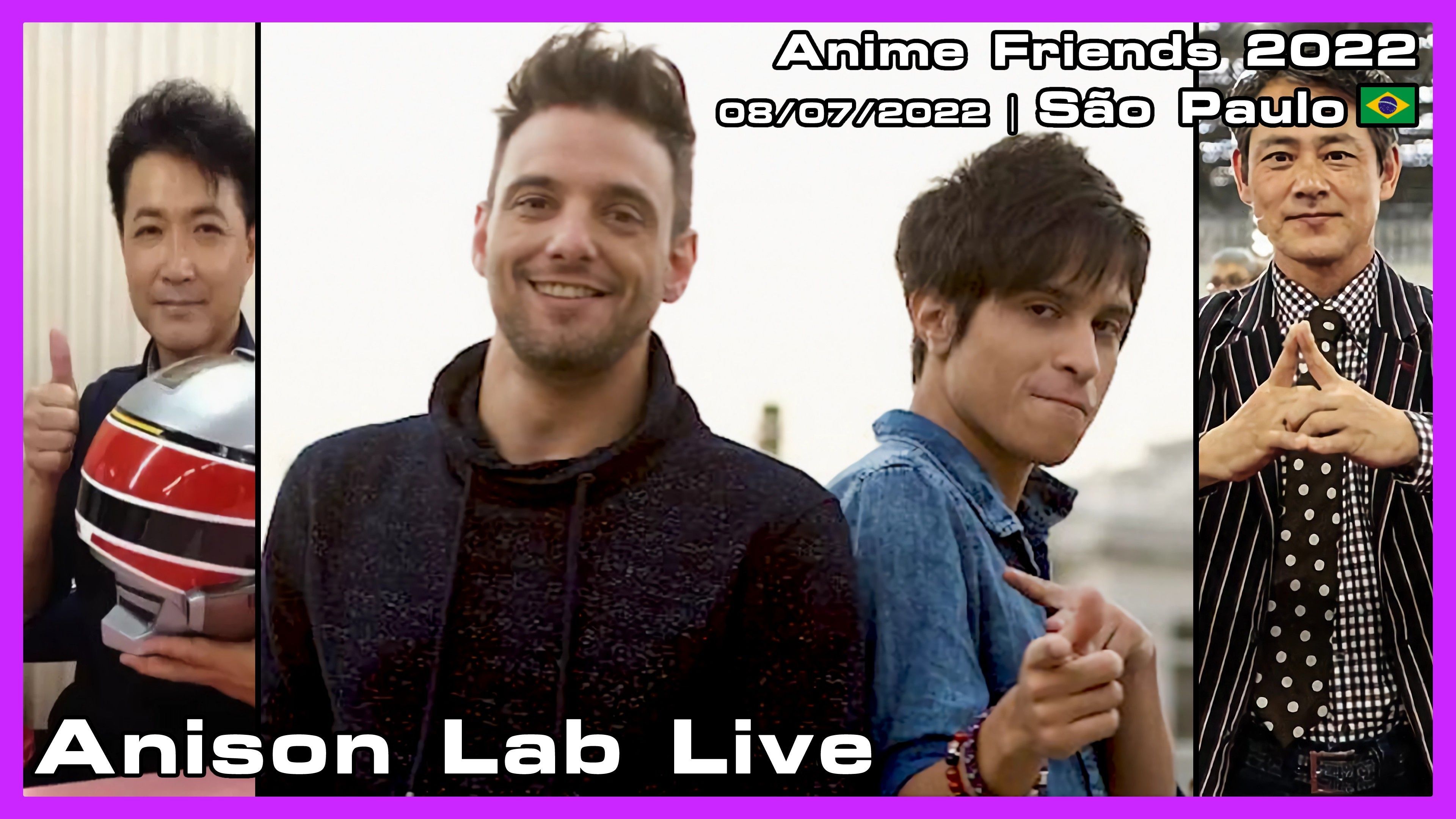 :: Informações: - Participante(s): Anison Lab Live [Ricardo Cruz (Vocal), Lucas Araujo (Guitarra)], Hiroshi Watari, Takumi Tsutsui - Evento: Anime Friends 2022 - Local: São Paulo (Brasil) - Data: 08/07/2022 :: Setlist: 1. We Are! 2. Kamen Rider Black RX 3. Brave heart 4. Spectreman 5. Nijiiro Crystal Sky 6. Baka Mitai 7. Startrip Ecstasy 8. Tank! 9. Neppuu Yarou JASPION 10. Jiraiya (Sekai Ninja Sen Jiraiya) 11. Gurenge 12. Shining Soul 13. Haruka kanata