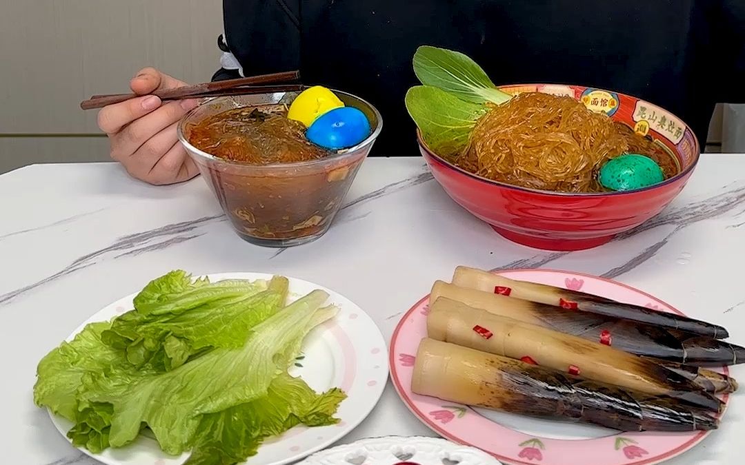 #Sour and spicy noodles Today Binbin is a little smart, but... #couples eating daily #love life love