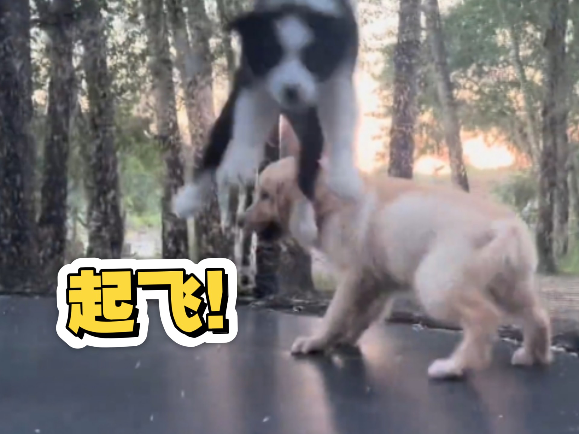 There is a pot of meat next to the "tiger". Border Collie VS Husky, who dares to eat it?