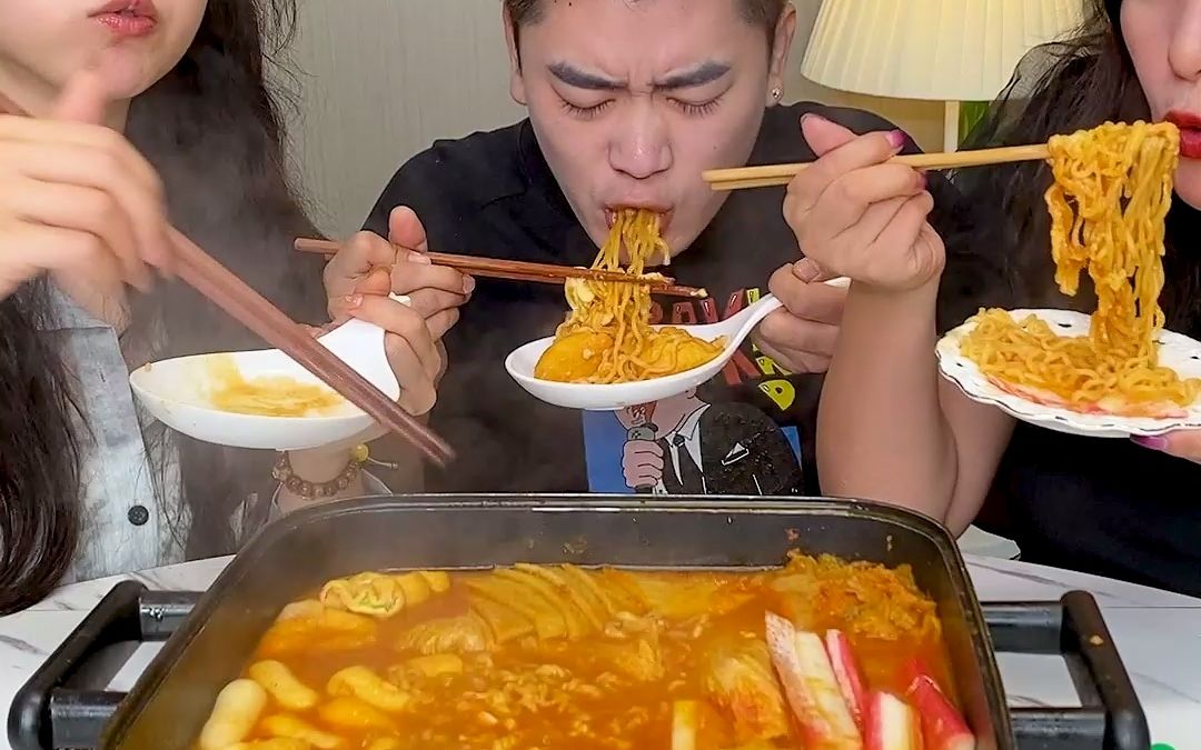 #Sour and spicy noodles Today Binbin is a little smart, but... #couples eating daily #love life love