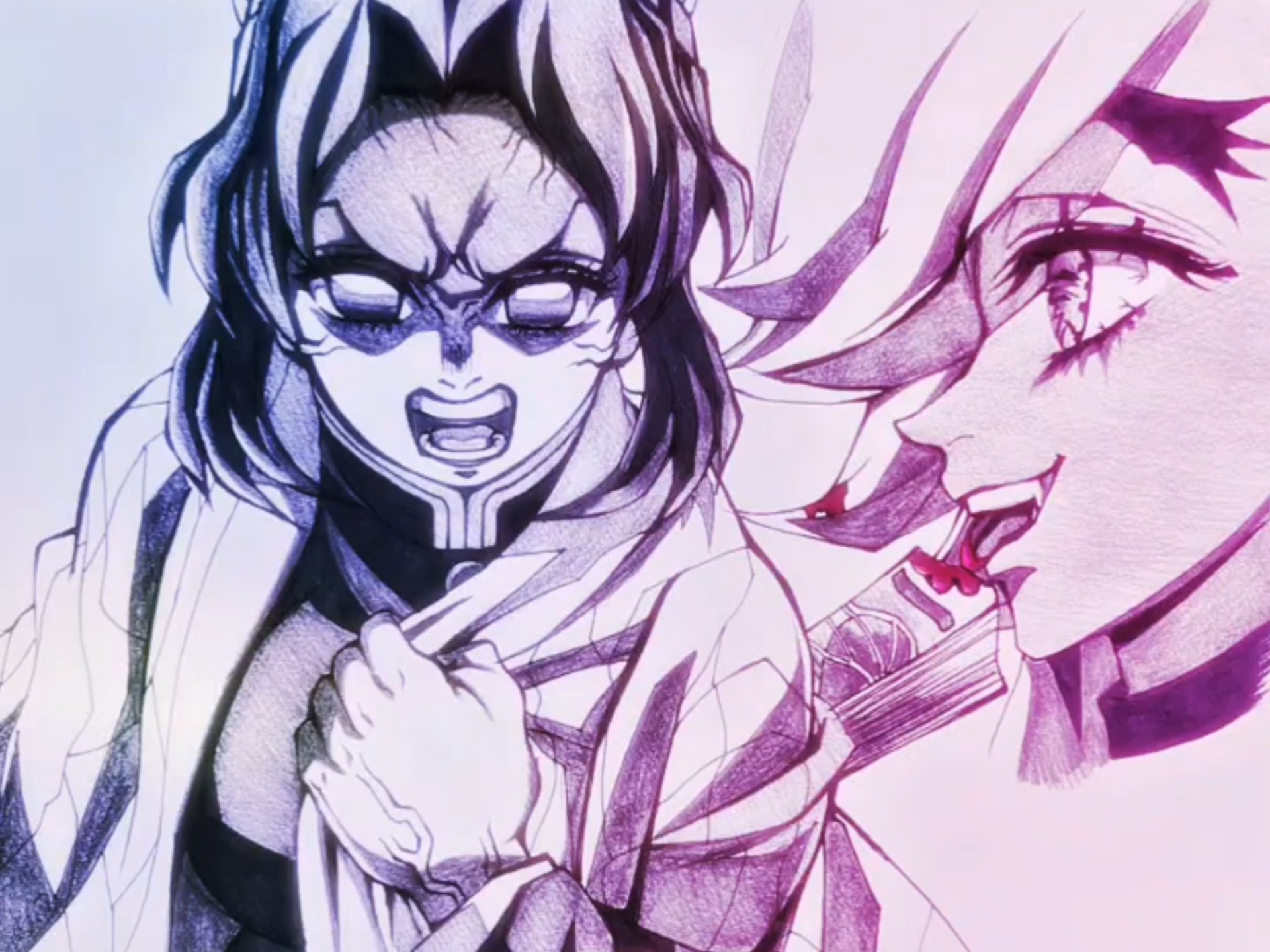 [Doujin painting] Hashibira Inosuke and Tsuyuri Kanao vs. Douma