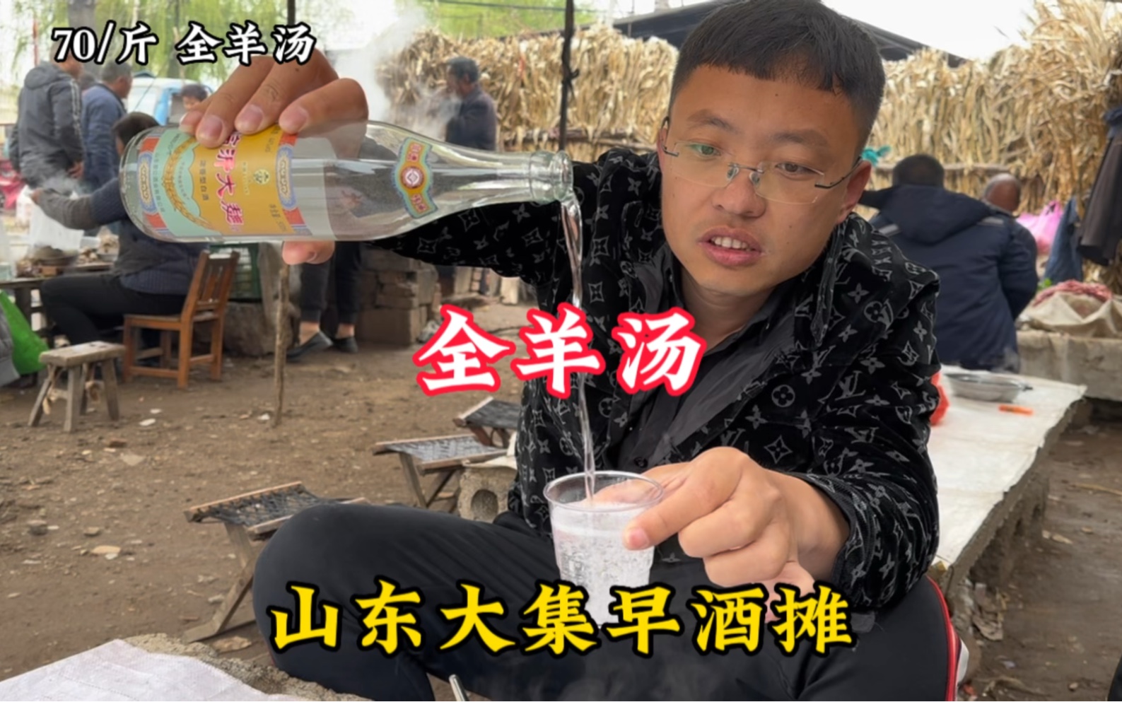 At the Shandong Daji early morning wine stall, an 83-year-old man eats meat and drinks generously, s