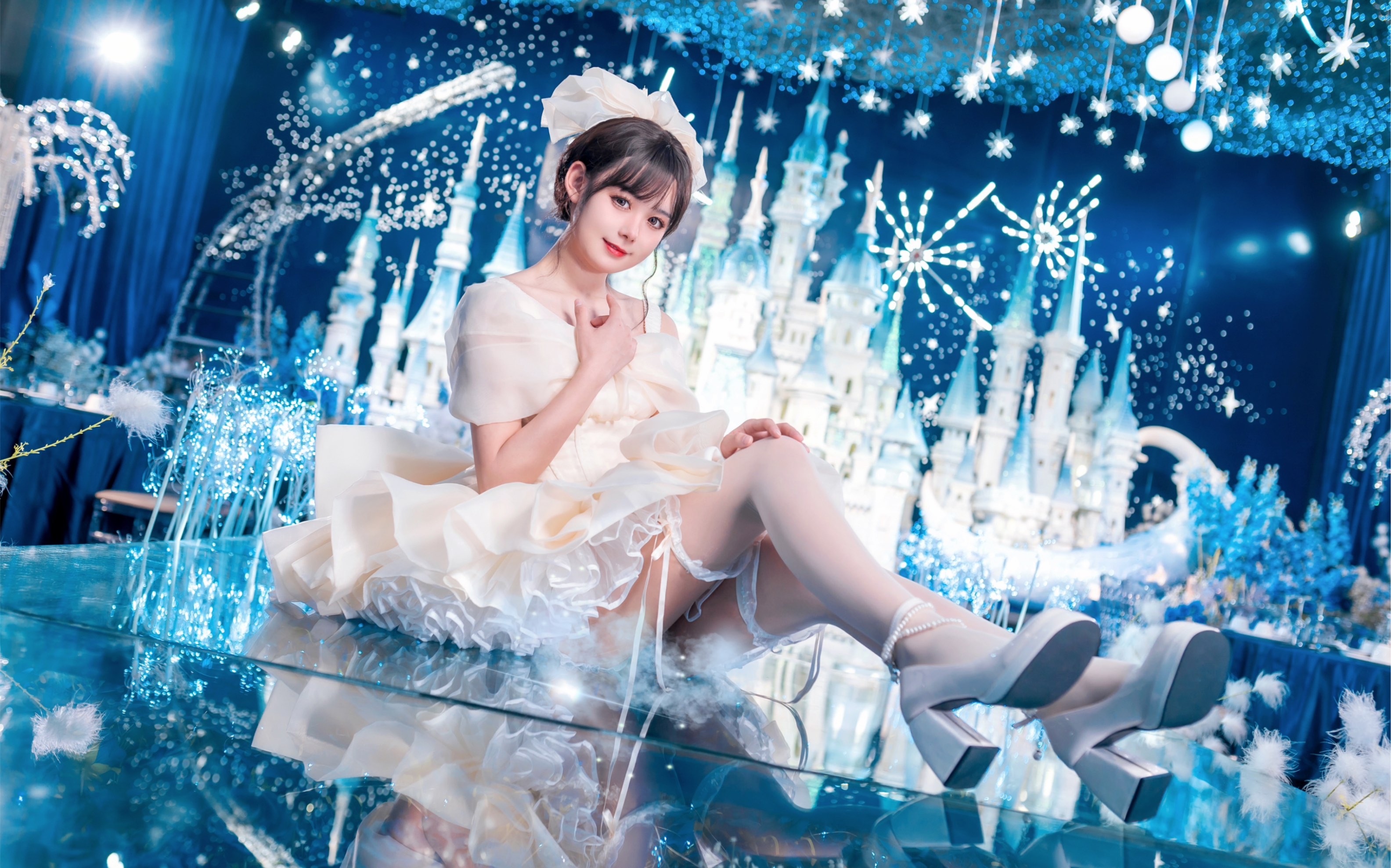 Oil-level HD ultra-close-up white high heels, no beauty filter version of the dance "Coming-of-Age C