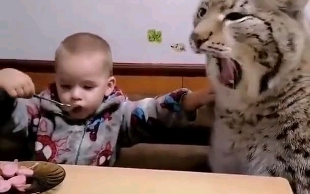 [Animals]Sweet friendship between a little lynx and a Scottish Fold