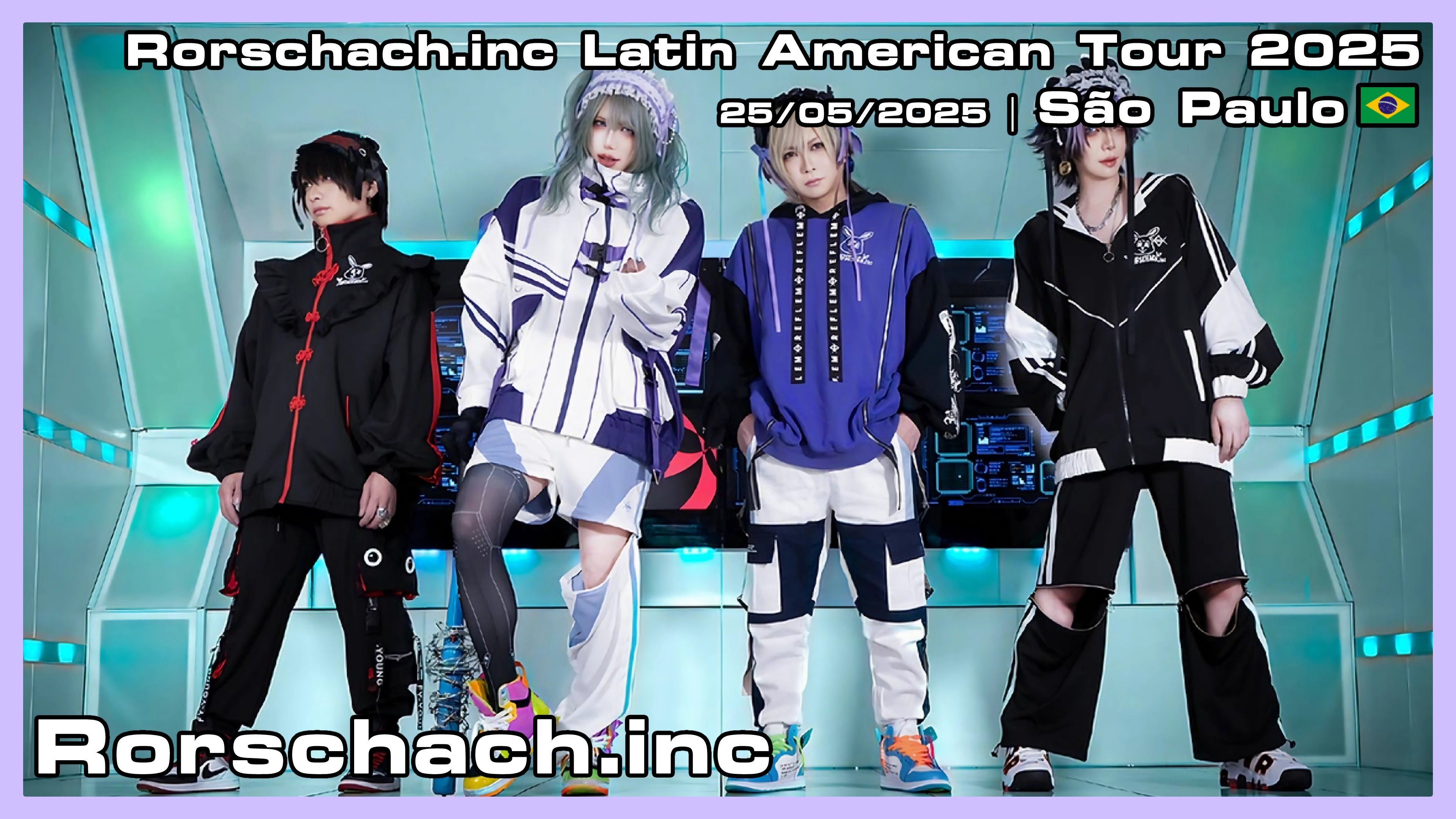 :: Informações: - Participante(s): Rorschach.inc [Rorschach 1-gou/Yuuri (Vocal), Rorschach 3-gou/Shogo (Guitarra), Rorschach 8-gou/Chobi (Baixo), Rorschach 2-gou/Mel (Bateria)] - Evento: Rorschach.inc Latin American Tour 2025 - Local: São Paulo (Brasil) - Data: 25/05/2025 :: Setlist: 1. Tokyo suyaa 2. ALICE IN TIDE LAND 3. USAGI 4. ANTI 5. KEMURI 6. Villan 7. Okuri Ookami 8. Mecha Usagi 9. KAIBUTSU 10. TOKYO Underground 11. WATCHMEN 12. GHOST