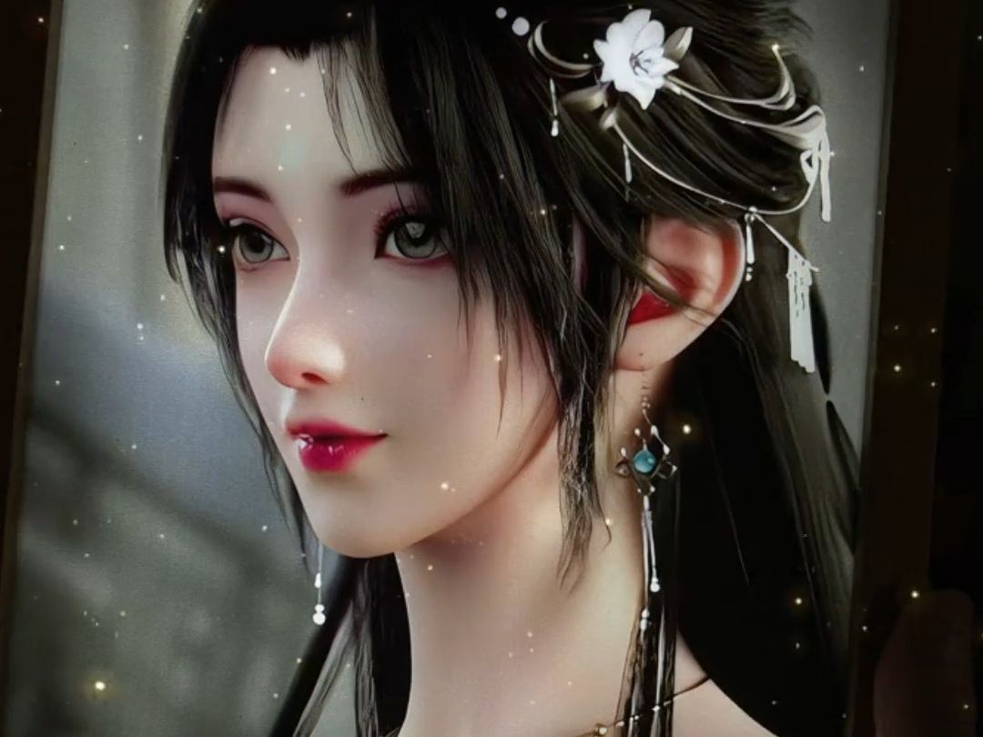 Fairy Yuechan, with long black hair like a waterfall and eyes like autumn water.