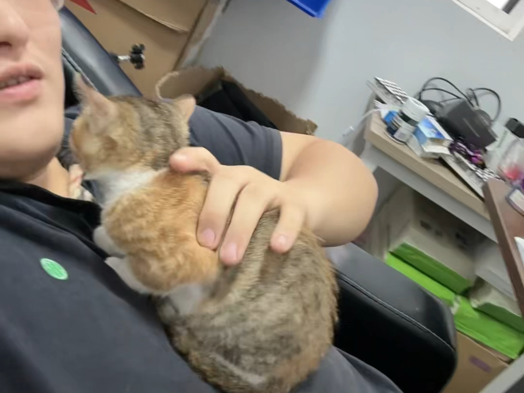 The baby kitten has a nightmare and needs to be coaxed to sleep
