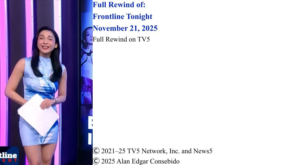 Balikan ang mga tampok na balita sa Frontline Tonight noong Biyernes, Nobyembre 21, 2025 sa TV5.